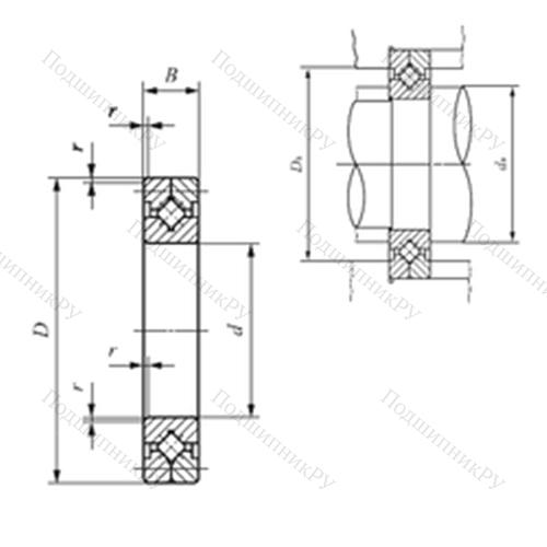 - Обладает более широкой зоной передачи усилий в сравнении с шарикоподшипниковыми аналогами, однако предназначен исключительно для работы с малыми скоростями вращения.