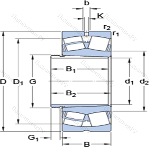 Сферические роликоподшипники на стяжной втулке 22214 EK + AH 314 G у которого конструкционной особенностью являются ролики в форме конуса и разъемный корпус. Изделие также может быть укомплектовано наружным кольцом с упорным бортиком или большим углом, двухрядными или четырехрядными роликоподшипниками, утолщенной внешней шиной.