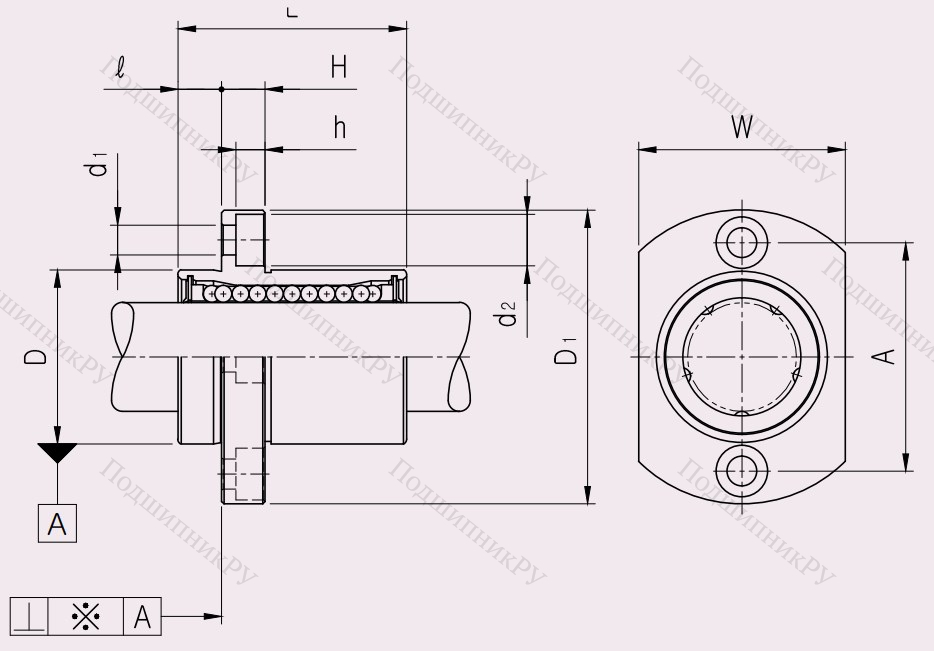Конструкция данного линейного подшипника является закрытой и предназначена для установки и эксплуатации совместно с валом цилиндрической формы. Овальный фланец узла, в зависимости от конкретной модели, может быть оборудован четырьмя либо двумя отверстиями. Защиту от разного вида загрязнений обеспечивает одностороннее или двустороннее уплотнение.